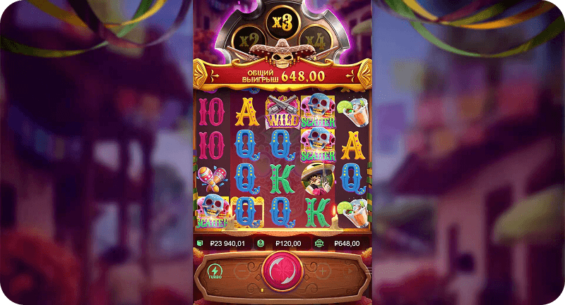 Wild Bandito — это полноценный видеослот от PG Soft, выполненный в мексиканском стиле с отсылками к народному празднику Дня мёртвых. Игровое поле — стандартная сетка 5×3, десять линий выплат. Слот запускается мгновенно в браузере, не требует ни скачивания, ни установки дополнительного ПО.